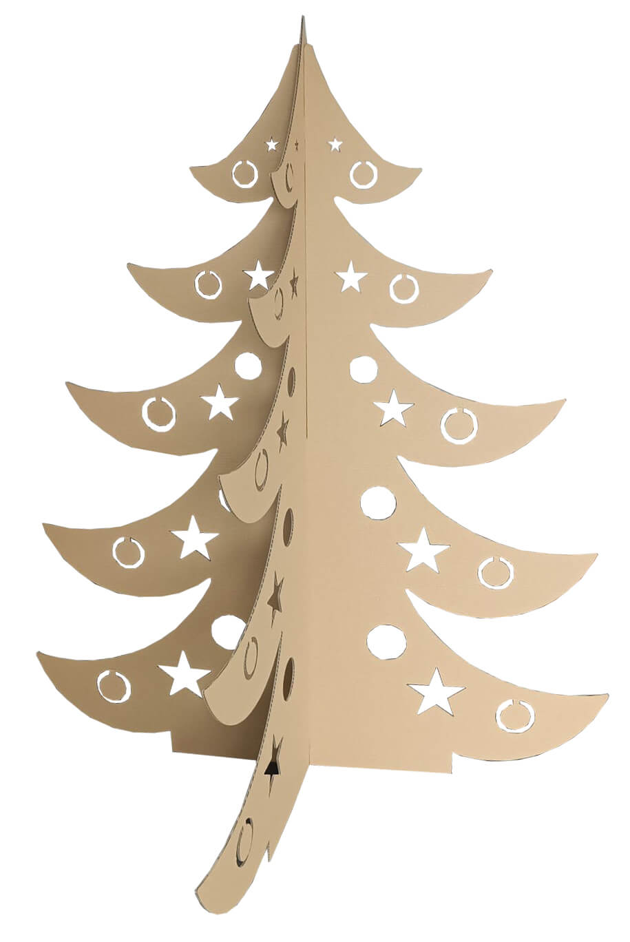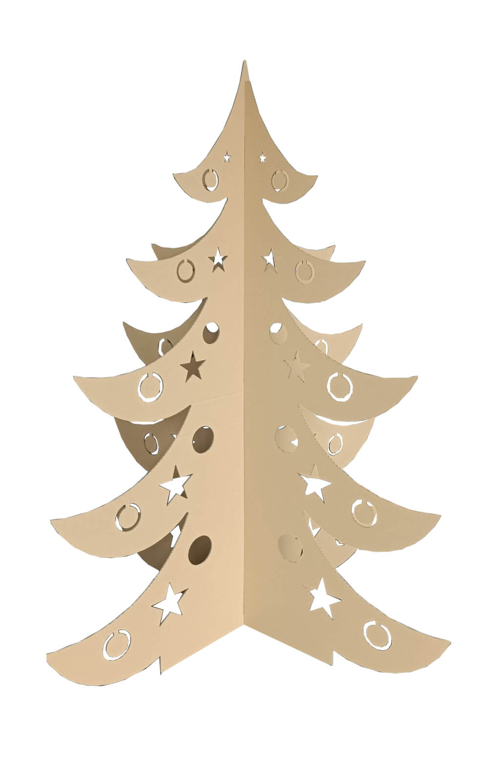 Nowoczesna, ekologiczna i lekka choinka z tektury falistej, idealna jako dekoracja świąteczna do domu, szkoły, przedszkola, biura, sklepu lub na eventy. Dzięki przemyślanej konstrukcji 3D drzewko samodzielnie stoi, a jego montaż zajmuje dosłownie chwilę – bez użycia kleju czy narzędzi.